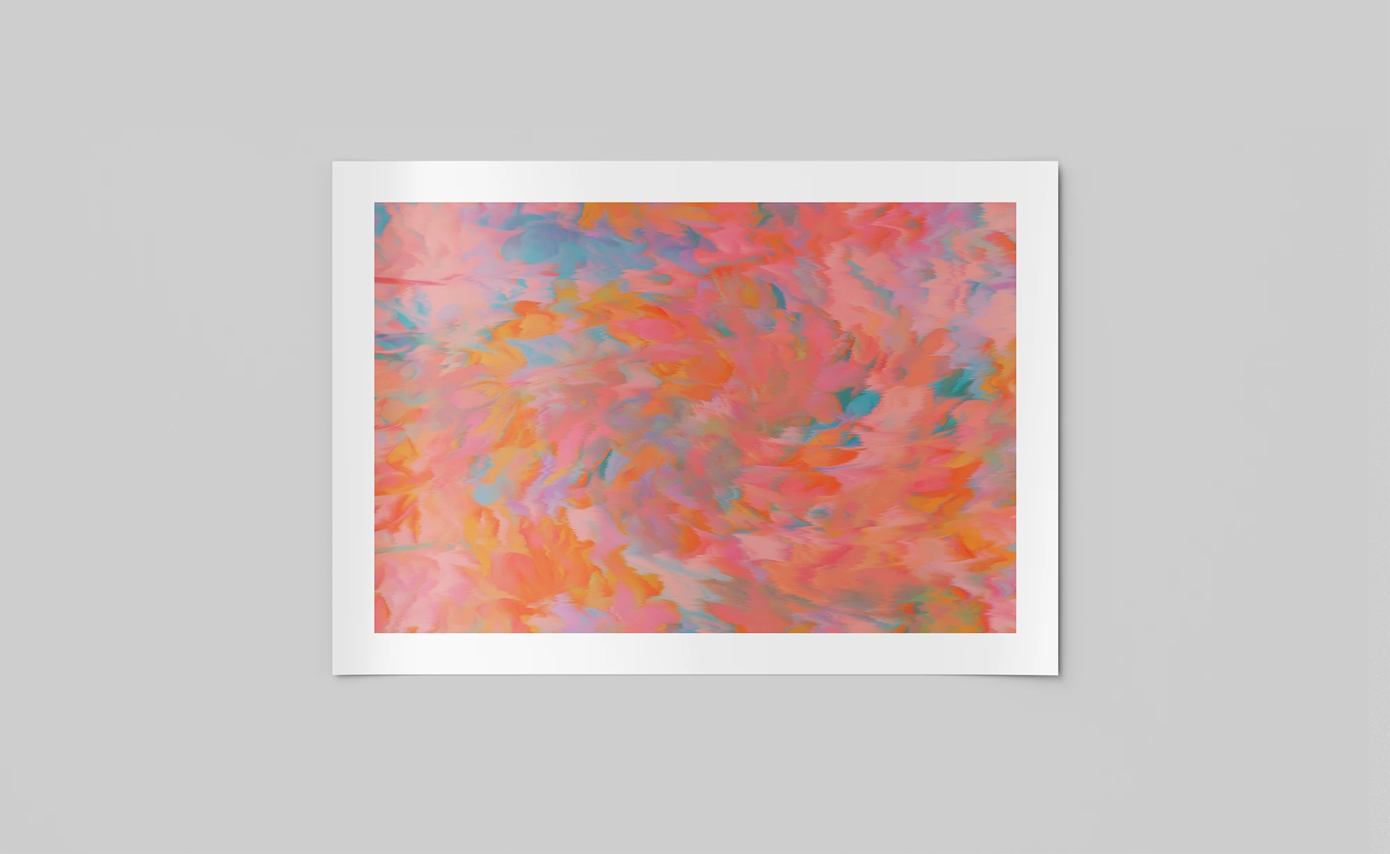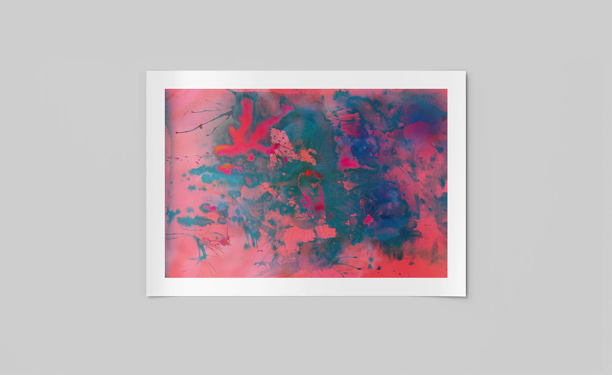 Artwork formatted for specific print products (archival paper, canvas, consumer goods). Artwork printed on canvas includes physical unique marks added in post-production.