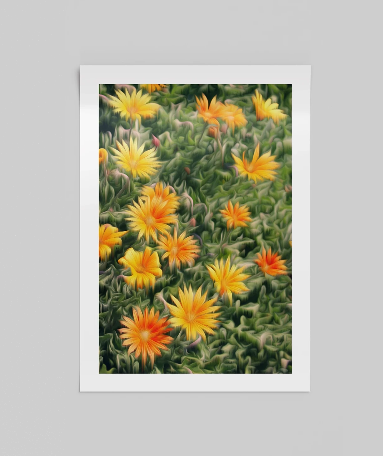 Mixed media art created using photography, physical paintings and digital techniques including layering and blending. Artwork printed on canvas includes unique physical marks added in post-production.