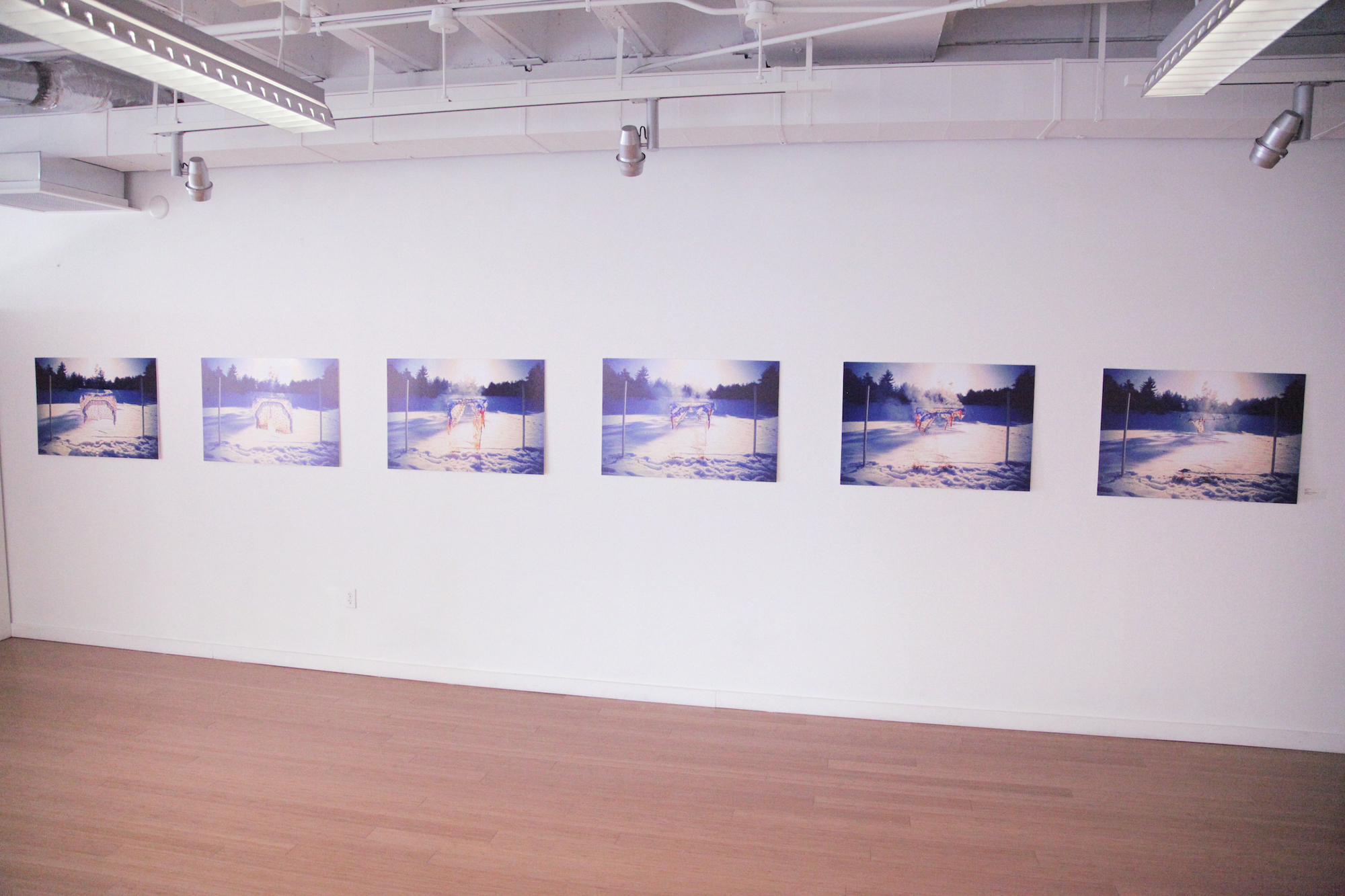 Group gallery show "TransFIREmation" was developed to feature the series, as the physical interactivity between viewer and art is essential to the installation's statement. In addition to the videos in this series, the six-panel 24x36" print series depicts burning curtains that may display the progressive transformation of curtains ravaged—or rebuilt—by fire, all based on the direction in which the viewer interacts with the series in the gallery space.
