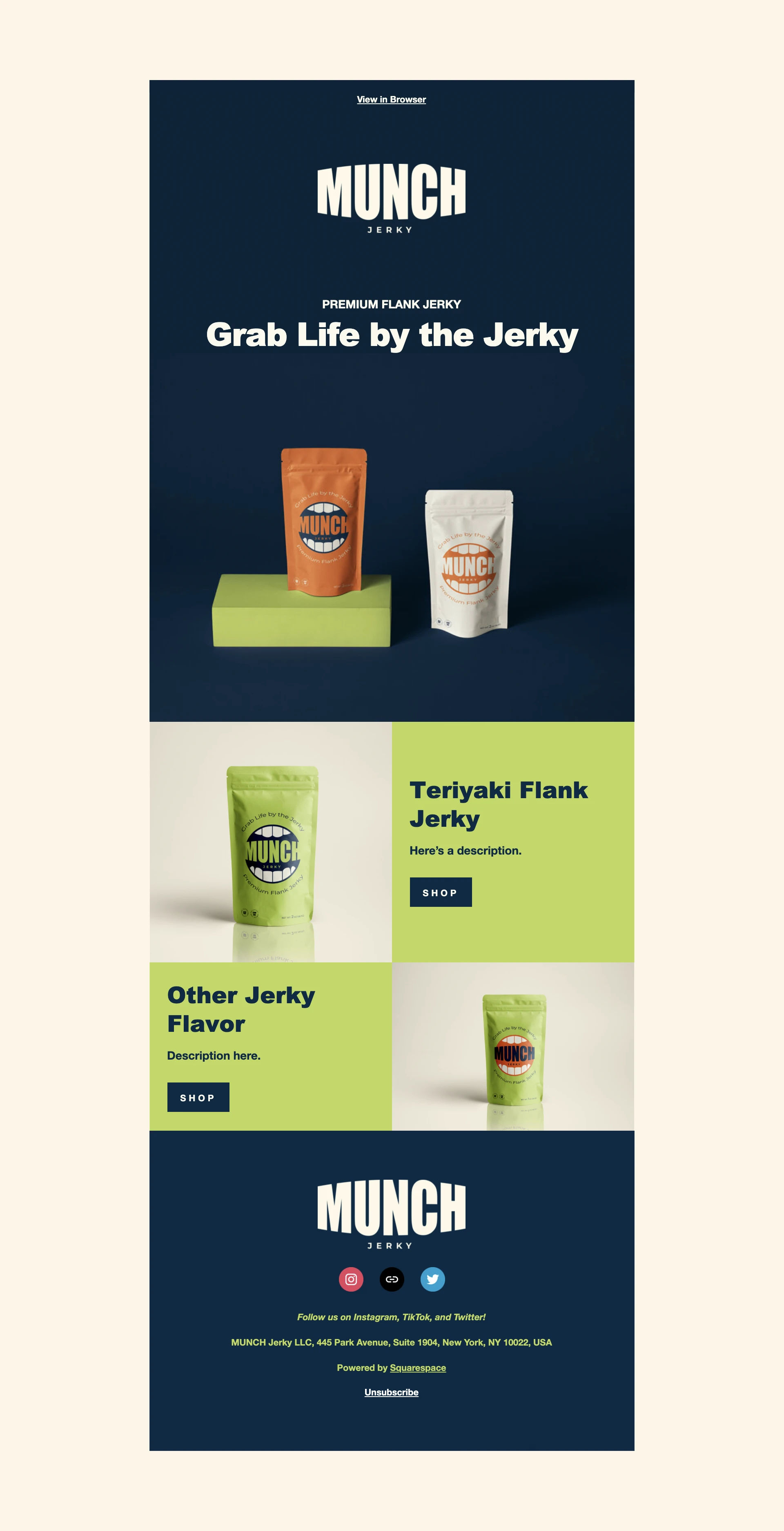 Designed branded newsletter templates with product focus using Squarespace Email Campaigns.