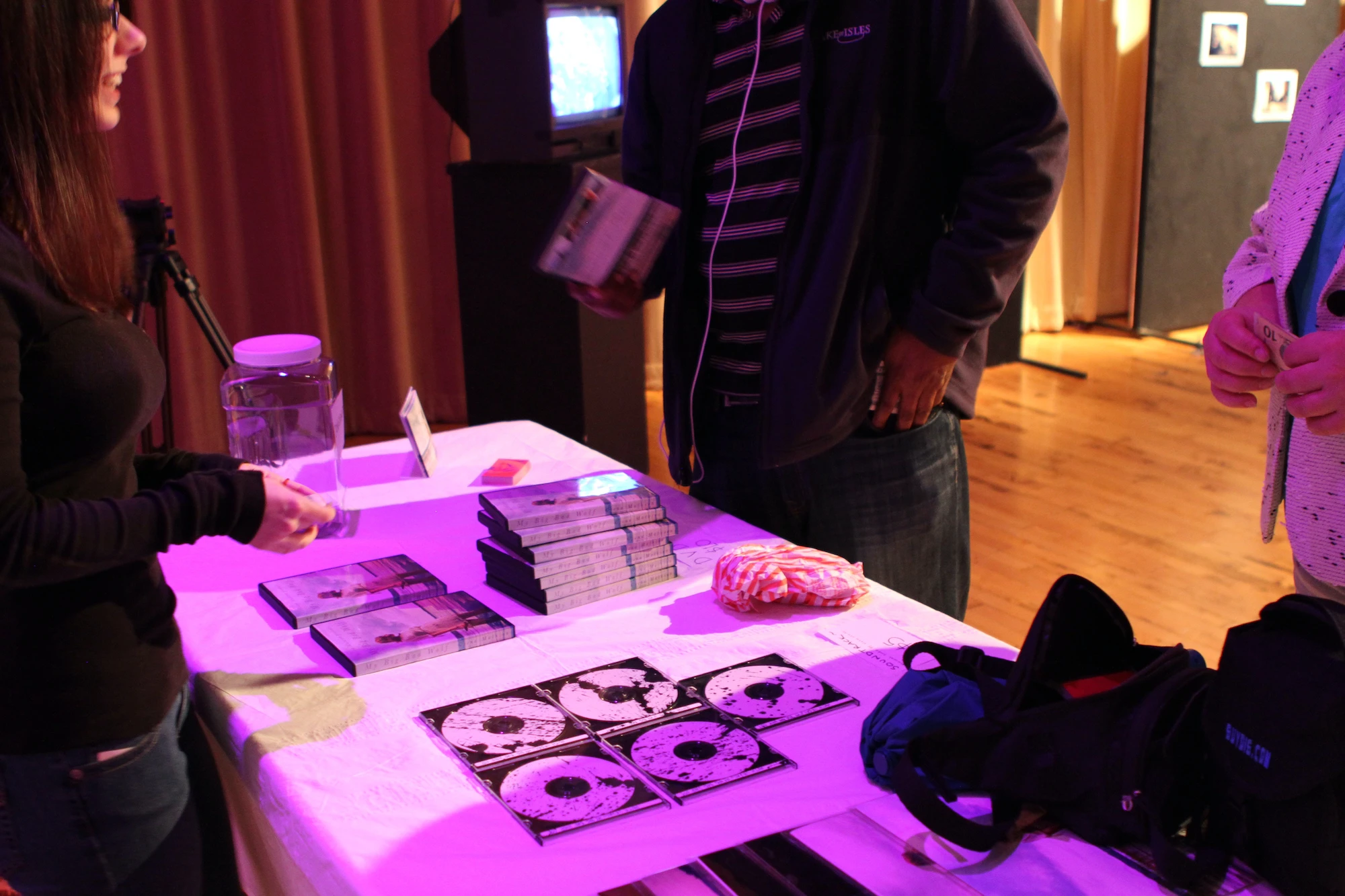 The film premiere for My Big Bad Wolf was held in Pozen Center at Massachusetts College of Art & Design in Boston. On display in the space were art prints from the film, plus various photography by Matuson. A merchandise table held DVDs, art prints, soundtrack CDs and crowdfund rewards.