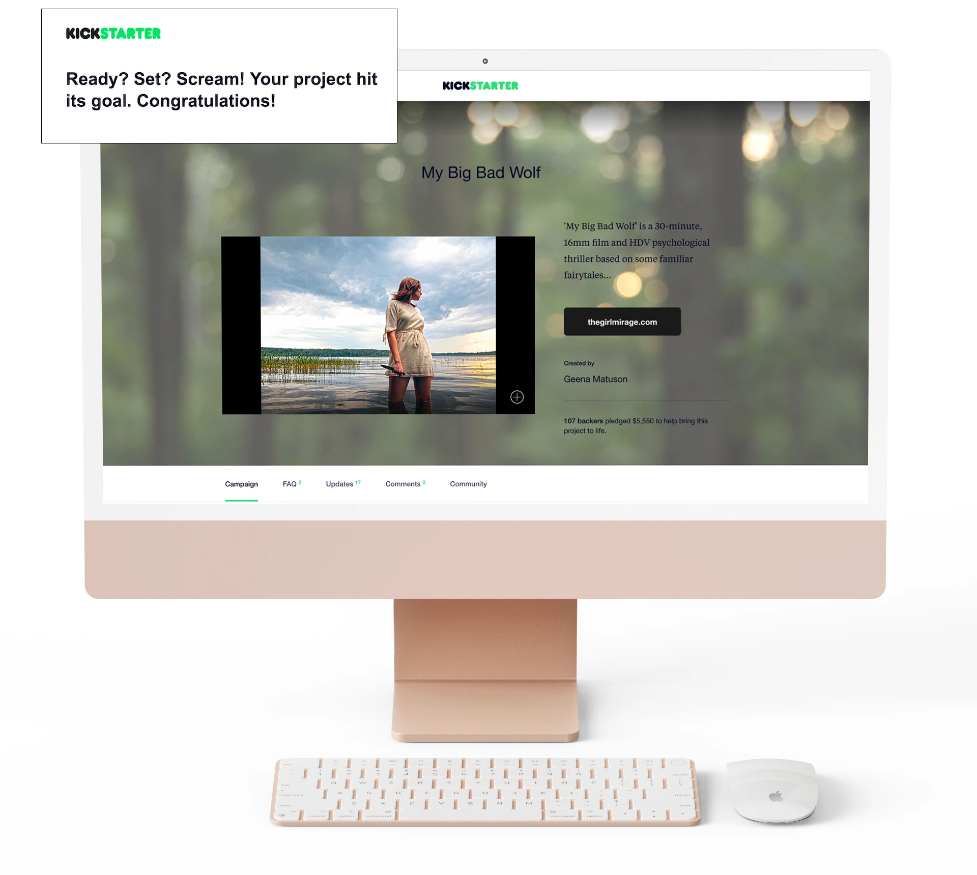 The project reached and exceeded its $5,000 crowdfunding campaign goal in 1 month, also landing 7 press listings and features across print and digital including an international feature with FilmFreeway, the film festival marketplace. The final film was shot in 8 days spread over 2 weeks, and immediately entered several months of post-production. The final 36-minute film My Big Bad Wolf was screened at 5 festivals and, after its premiere event, was distributed online with streaming platform IndieFlix.