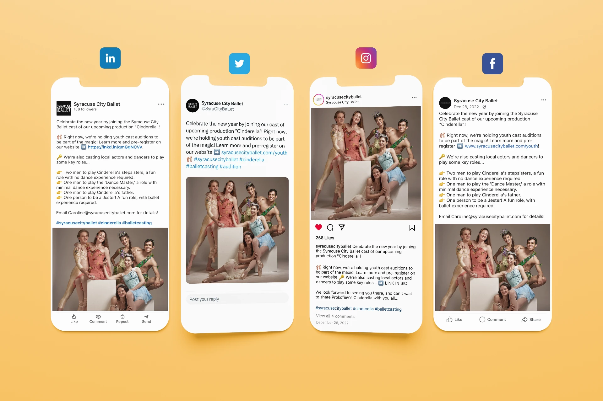 Posts and communications are no longer simply nice photos, but include a specific call to action. Syracuse City Ballet has never had a more polished online presence than it does today, thanks to Geena’s professional and organized approach to marketing.